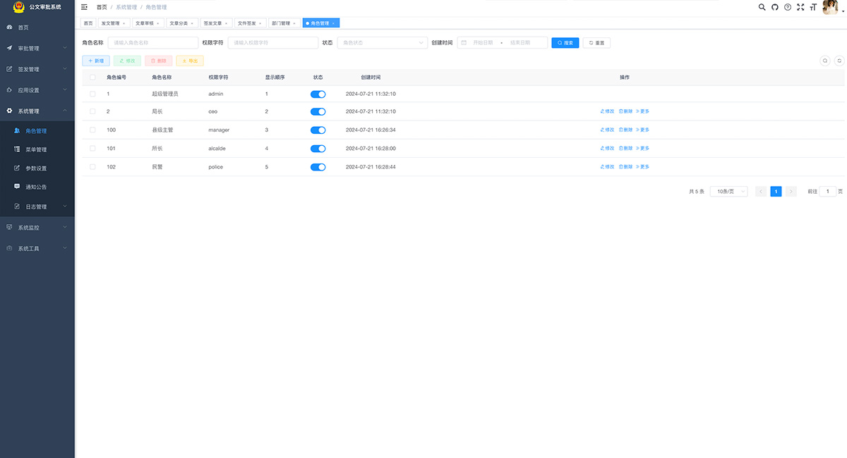 適用于政府機關、企事單位公文審批,系統采用Java EE 企業級快速開發平臺,基于經典技術組合(Spring Boot、Spring Security、MyBatis、Jwt、Vue),內置模塊如:部門管理、角色用戶、菜單及按鈕授權、數據權限、系統參數、日志管理、代碼生成等;
